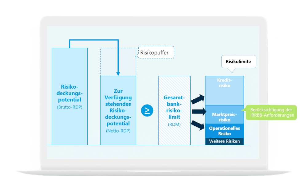 - Adäquate Berücksichtigung der IRRBB-Subrisiken (Basis- und Optionsrisiko) sowie von Credit Spread Risiken im Bankbuch (CSRBB)