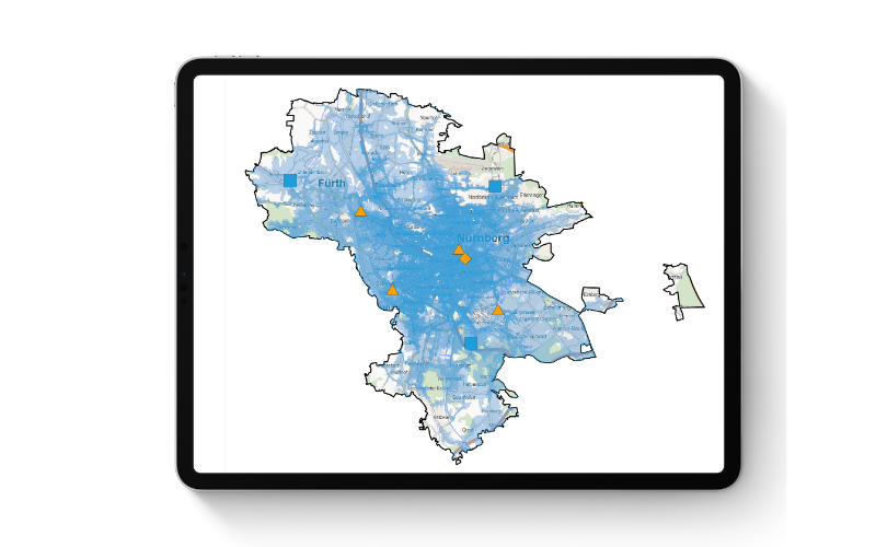 Das Optimierungsverfahren ermittelt den optimalen Filialstandort, der unter Berücksichtigung von Anfahrtszeitbegrenzungen das maximale Ertragspotenzial ausschöpft. Dabei werden auch relevante Orte von Interesse, wie beispielsweise Einkaufszentren, einbezogen.